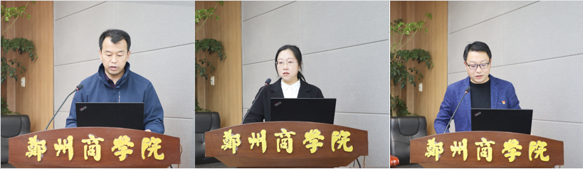 在专题发言环节,党委宣传部部长兼新闻中心主任程文质从做好舆情工作的重大意义、舆情传播的途径及特点、舆情风险防范及化解、舆情的研判与处置等方面进行了专项汇报;学务处处长路程根据学生事务服务平台建设、学生宿舍管理水平提升情况进行汇报;质评中心主任张晓辉针对试卷质量检查情况进行汇报;信工学院院长张晓冬围绕分层分类教学、毕业生实习实训等教学综合改革推进情况进行汇报。