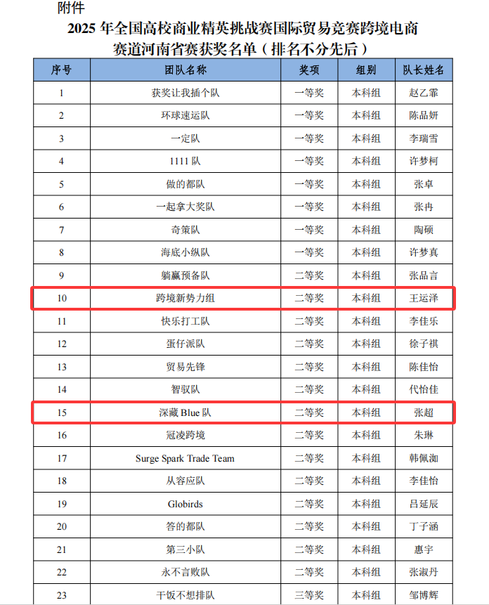 为进一步落实“数智供应链专业集群”建设主体责任,深度进行学生开放式业务链理论学习和实践能力培养,满足学生在新型商业模式中上游业务链就业发展需求,德赢官网近日组织“数智供应链专业集群”内相关专业同学参加由中国贸促会商业行业委员会、中国国际商会商业行业商会及中国商业经济学会主办的全国商业精英挑战赛国际贸易竞赛跨境电商赛道河南省赛。在夏元燕、王祎、李国艳、范彦松、李凡、张倩倩等六位教师的指导下,涉及跨境、国贸等相关专业的王运泽、廉心怡、陈姿彤、张超、陶春娜、袁敬博等13名同学组成的三支参赛团队表现优异,分别荣获2个“二等奖”和1个“三等奖”,并获得参加全国总决赛的资格。