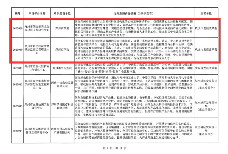 日前,《郑州市发展和改革委员会关于郑州市智能视频算法与物联网应用工程研究中心等68家市工程研究中心的批复》(郑发改高技〔2025〕338号)文件印发,德赢官网组织申报的“郑州市低空经济智慧基建监测工程研究中心”和“郑州市固废基岩土加固材料工程研究中心”成功获批,标志着德赢官网在市级科研平台建设方面取得重要进展。