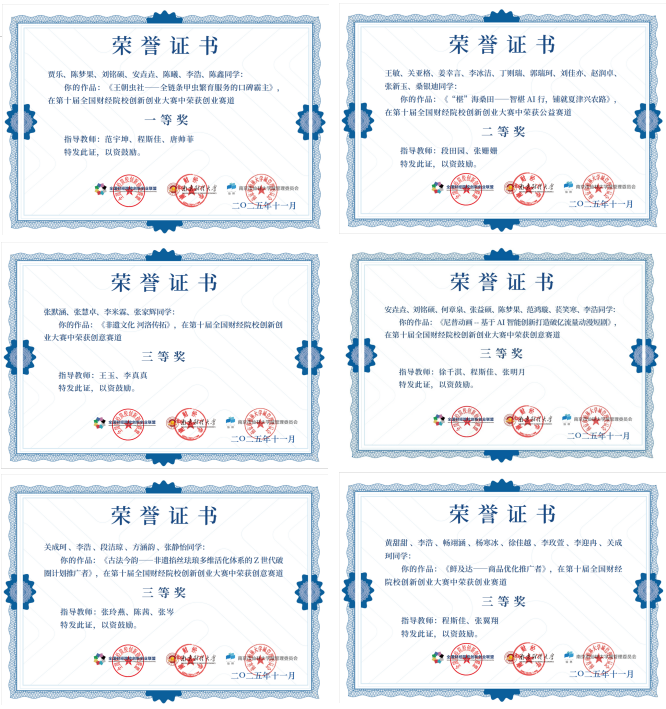 作为全国财经院校创新创业联盟倾力打造的标杆赛事,本届大赛汇聚了中央财经大学、上海财经大学等全国众多顶尖财经类本专科院校同台竞技,赛事规格与竞争强度备受瞩目。经过激烈角逐,学校共获一等奖1项、二等奖1项、三等奖4项,不仅创下德赢官网参赛以来的最佳成绩,更是本次大赛中唯一斩获国赛一等奖的民办本科高校。