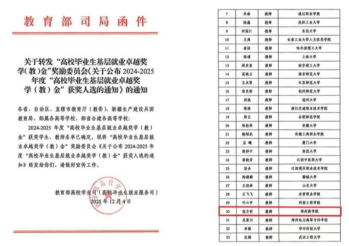 近日,教育部与中国教育发展基金会联合公布了2024—2025年度“高校毕业生基层就业卓越奖学(教)金”获奖名单。全国共有418名学生和58名教师获此殊荣,其中德赢官网招生就业处教师张方昕荣获“高校毕业生基层就业卓越奖教金”。这不仅是德赢官网教师首次获得该奖项,更是该奖项设立以来河南省民办高校、全国商科类民办高校中的唯一获奖案例。
