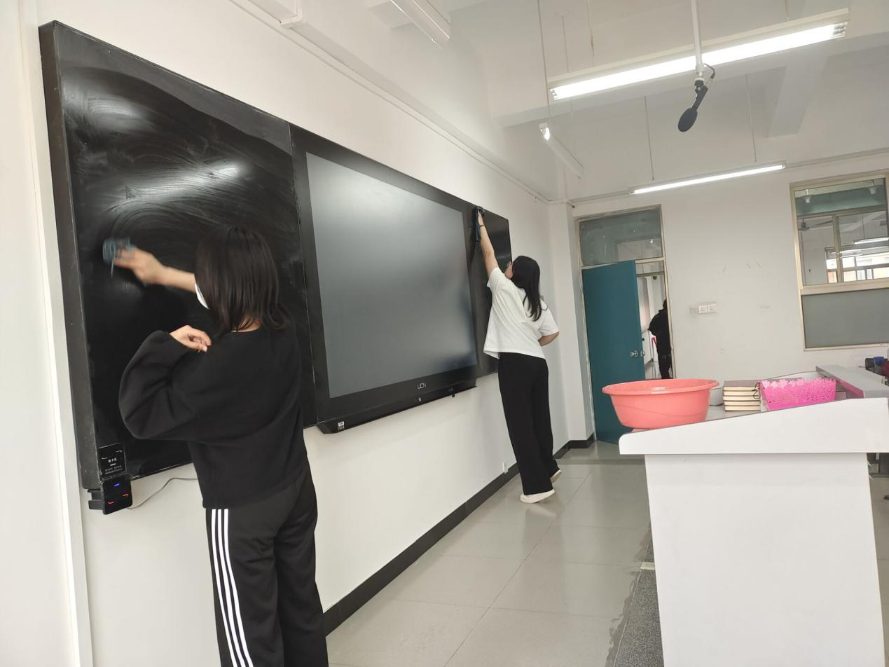 在一天中结束忙碌的课程中,虽然课程比较满,但是我们仍坚持去打扫室内的教室。同时我们互帮互助使我们深刻的认识团结就是力量,众人拾柴火焰高。