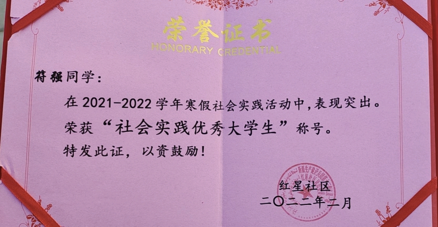 “疾风知劲草,板荡识忠臣。”毫无疑问,新冠肺炎是当前全国人民面对的重大挑战,也是一场“试金大考”。在这个非常时期,人员流动大,同时志愿者紧缺,作为新时代大学生,应当走在防疫前列,积极投身抗疫前线,为抗击疫情贡献自己一份微薄之力。符强同学在2021年疫情期间,积极奉献,主动作为,争当志愿者,自愿为人民奉献,不惧危险。“艰辛知人生,实践长才干”,通过这次抗疫实践活动不仅提升了他的思想觉悟,更是磨砺了意志与耐力,同时也让他看到了自己的潜力。符强同学表示“当我为学校抗疫做出一份贡献、为社会做了一点幸福,并在志愿活动中找到了自己的价值,奉献不止为自己,更为他人。"