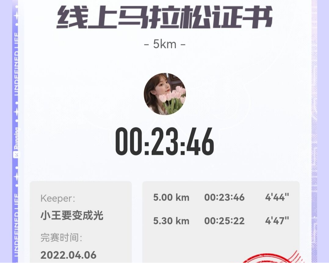 王朦朦同学在生活中热爱运动,努力学习的同时也在坚持锻炼身体,经常去操场上运动。为了贯穿落实vwin德赢ac米兰官方网“三大教育、两大工程”中“身体素养提升工程”,她积极地参加了学院举行的春训,作为径赛运动员参加训练,为2022年校赛做准备,为了给自己和学院争得荣誉,她每天认真完成训练任务,在两个月的刻苦努力下,她取得了明显的进步。不仅如此她还参加了keep的活动,在2022年三月份参加“不被定义”系列线上马拉松比赛并成功拿到奖牌。在四月份参加“见习爱神,心动线上跑”活动中再次赢得奖牌。这些活动不仅能够督促她完成挑战,也带着身边的同学一起在挑战自我的同时提升身体素养。只有把运动培养成兴趣,养成良好的运动习惯,才能把体育锻炼融入到生活中去。