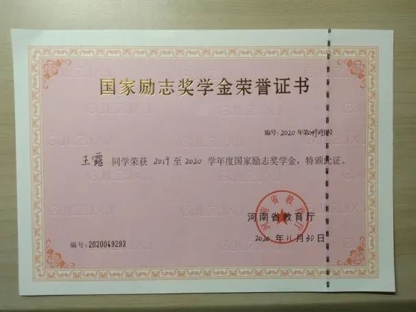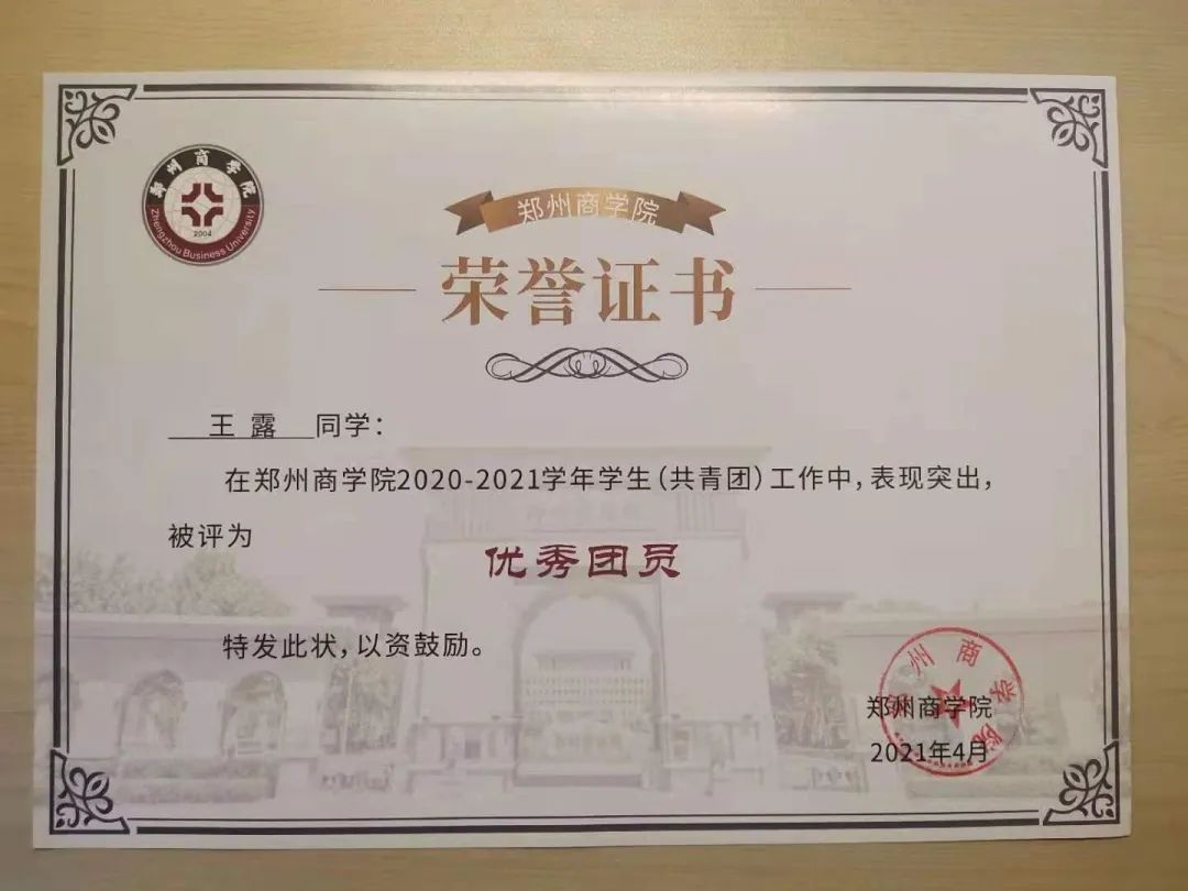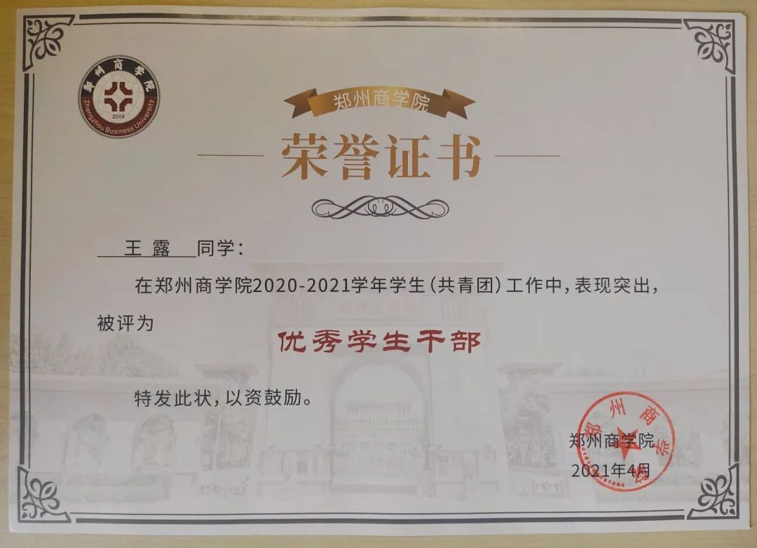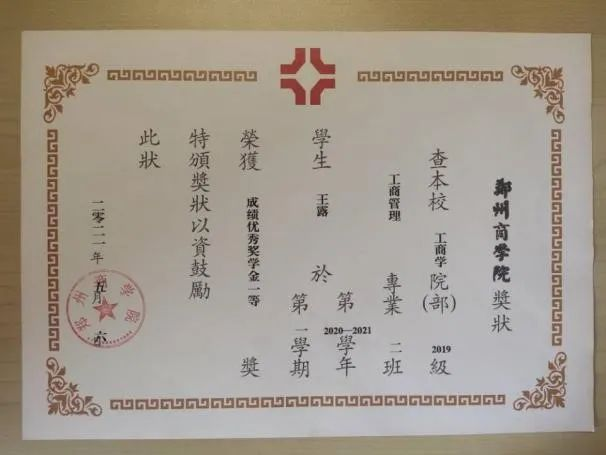 王露同学具有很强的学习能力。入校以来,她曾获得国家励志奖学金两次,成绩优秀奖学金一等奖四次。在学习专业课以外,也不断提升自己,获得了2020年“挑战杯”河南省大学生创业计划竞赛铜奖, 2021年河南省高校 “踏瑞杯”技能大赛校园选拔赛二等奖。