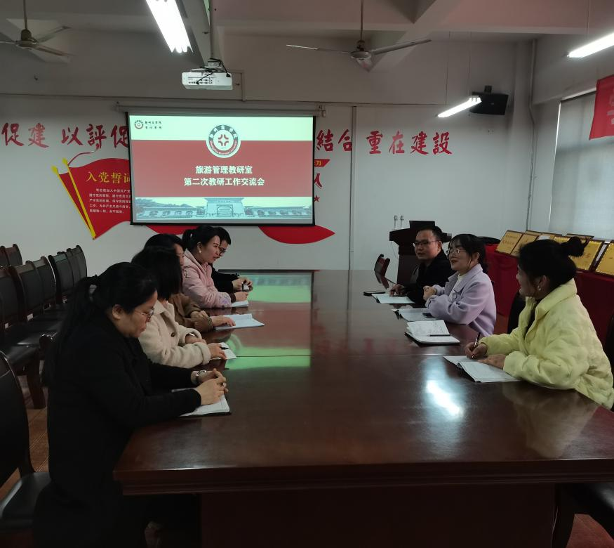 为了推进教学工作顺利开展,同时提高教研室全体教师教学水平,旅游管理教研室主任王彦青老师带领旅游管理教研室全体教师于3月11日下午16:40在2号楼206会议室举行了本学期第二次教研工作交流会。
