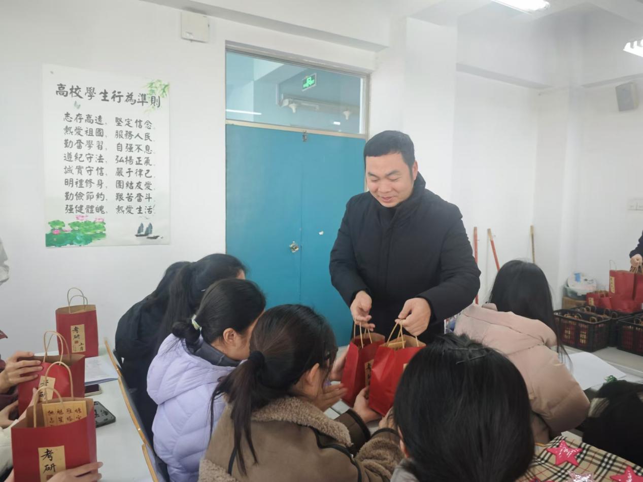 最后,领导老师们亲手将满载着深情厚意的“考研礼包”送到了同学们的手中,每一份都承载着学院的深厚关怀与祝愿,如冬日暖阳般温暖着学生。