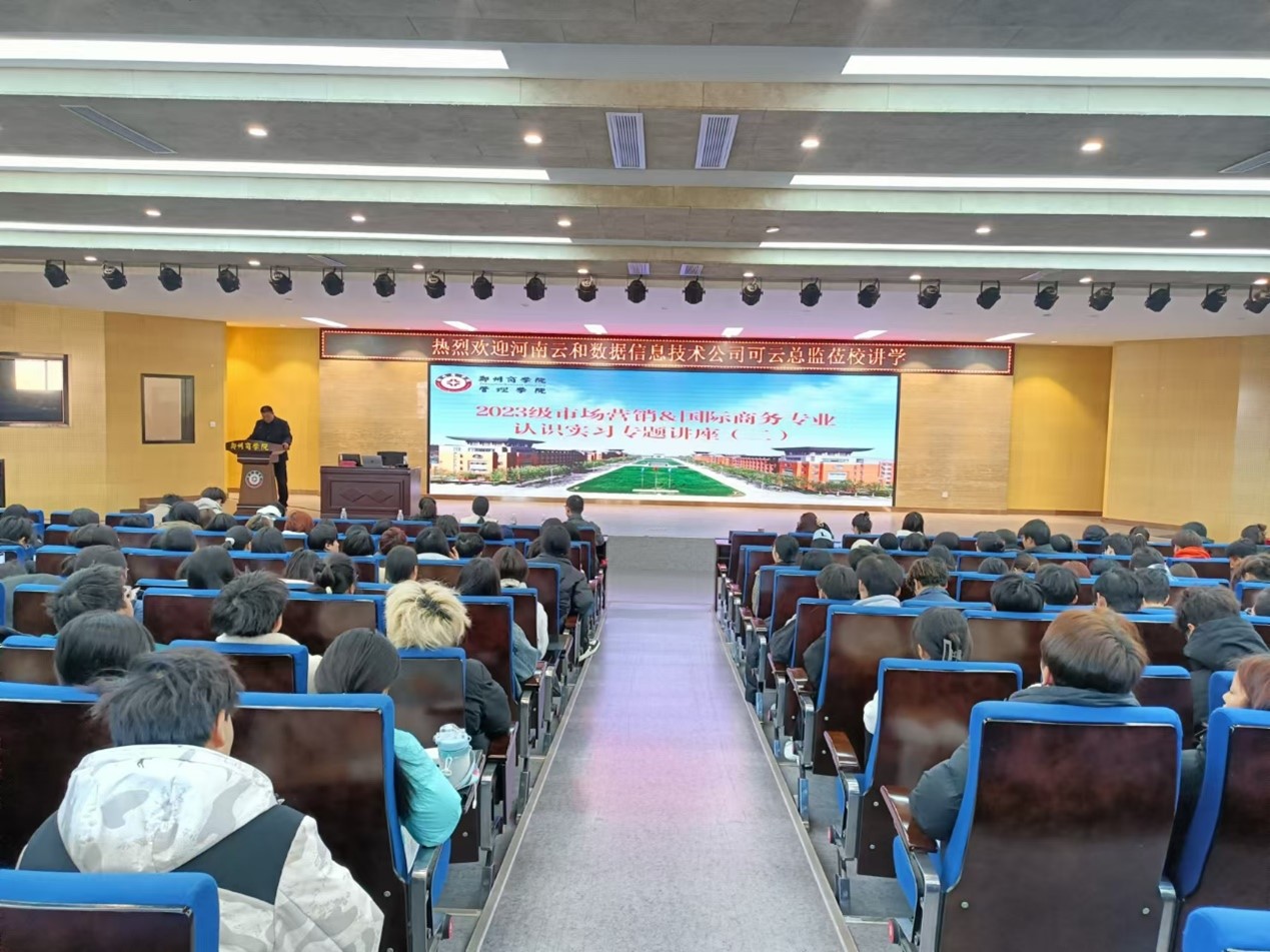 为提升市场营销和国际商务专业学生的专业素养和实践能力,11月29日,2023级市场营销和国际商务专业在自力大楼三楼报告厅联合举行认识实习第二场专题讲座。河南云和数据信息技术有限公司市场运营总监可云先生受邀作了《新媒体行业的商业机遇与职业化发展》专题报告,我院营销教研室和国商教研室的教师代表以及2023级市场营销和国际商务专业全体学生参加了此次讲座,讲座由李鹏菲老师主持。