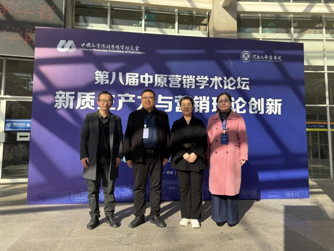 为提高德赢官网工商管理省级重点学科和市场营销专业建设质量,提升专业教师的科研水平和教学能力,11月30日至12月1日,我院选派张卫丽副院长、张玲燕教研室主任、骨干教师杨松柏和苗瑞洲一行四人参加第八届中原营销国际学术论坛年会。本次国际学术论坛由中国高等院校市场学研究会主办,河南大学商学院承办、河南财经政法大学工商管理学院协办,会议以“新质生产力与营销理论创新”为主题。