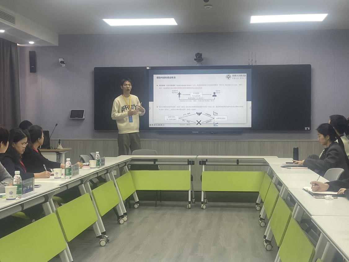 下午的会议内容共分为两部分进行,第一部分是大会召开三个平行论坛和中原营销学术论坛程序委员会会议。平行论坛分别围绕“直播”、“AI虚拟主播”、“电商带货”以及“情绪价值”等多个主题进行分享讨论,张卫丽副院长,张玲燕主任以及苗瑞洲副教授分别进入一个平行论坛会议进行学习。中原营销学术论坛程序委员会会议围绕并商讨了第九届中原营销论坛举办议程、大会程序委员会增补以及成员院校营销专业建设典型做法。会上,我院杨松柏副教授作为程序委员会委员参会并做典型分享,分享了德赢官网优先支持商科发展战略、分层分类综合教育改革,同时分享了教育数字化转型下德赢官网商科教育改革思路,以及通过数字化转型培养更多适应时代需求的商科人才的具体措施。第二部分由南京大学黄韫慧教授、对外经济贸易大学孙瑾教授、河南大学李耀教授以及重庆大学李小玲教授多位学者依次做主题报告。