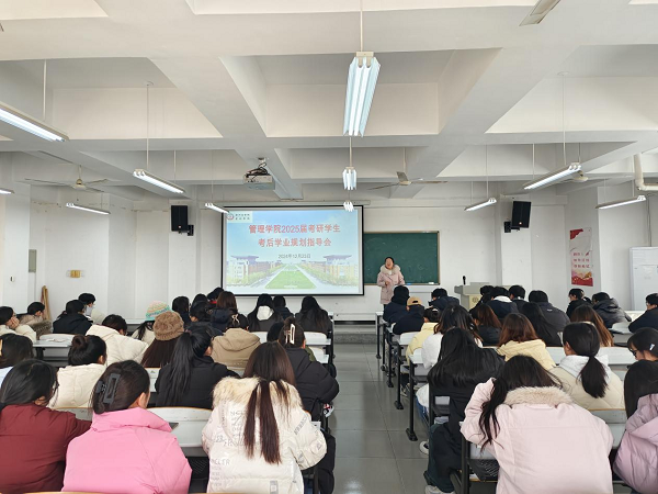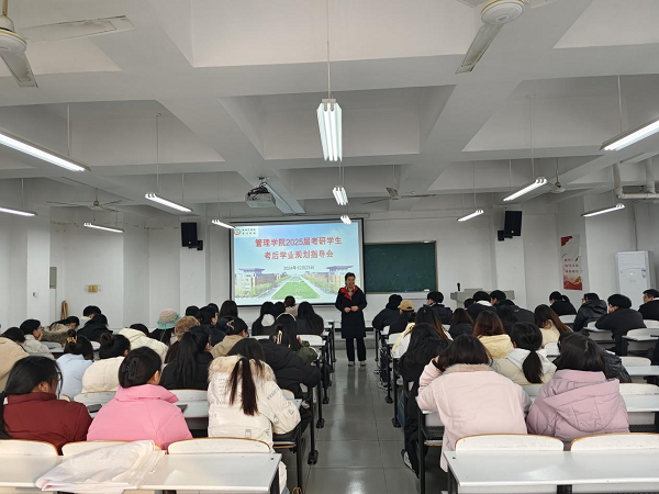 2025考研初试已经落下帷幕,为帮助学生在短暂休憩后尽快调整状态,明确后续学业重心和目标,避免或者缓解考后综合征,管理学院于12月23日在2501教室召开了2025届考研学生考后学业规划指导会。李晓翠院长、张卫丽副院长、考研指导教师及2025届考研学生参加了会议。