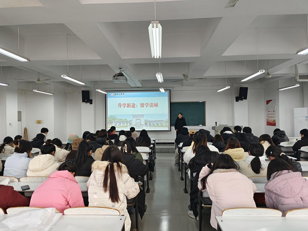 然后,张影老师针对留学读硕这个新赛道展开了讲解。她强调了学院对学生发展的高度重视,配备专业教师团队为有志于留学深造的同学提供全方位支持。并重点介绍了新西兰怀卡托大学、梅西大学、韩国国立釜庆大学、蔚山大学和梨花女子大学等合作院校的独特优势、学费情况以及奖学金政策,现场还提供了现场咨询及扫码进群等咨询方式,帮助学生获取更多的留学信息。