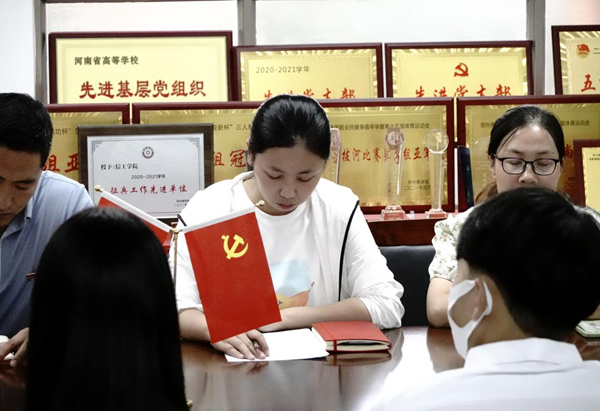 接下来由杨瑞瑞同志宣读了《信工学院党员先锋岗考核办法》,随后学生党员代表也进行了发言。
