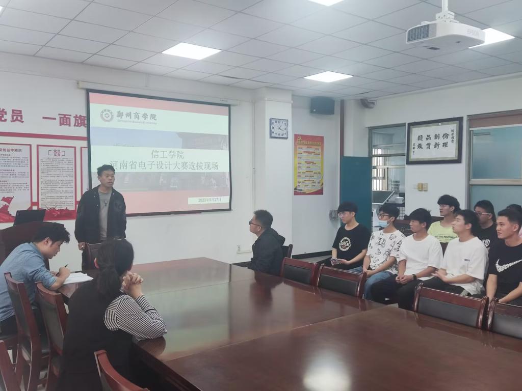 为贯彻落实省委、省政府关于“设计河南”建设的战略部署,持续深化教育教学改革,加快培养卓越设计人才,打造设计创新中心和人才高地战略。vwin德赢ac米兰官方网信息与机电工程学院积极组织、动员学生参赛。2022年9月27日,信工学院组织竞赛报名学生进行大赛选拔,信工学院院长张晓冬、电气教研室主任张雅博和电子与通信教研室主任杨德青参加此次选拔工作。