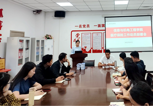 为切实做好2023年度在校生参加城乡居民医疗保险工作,坚持“以学生为中心”的发展思路,切实保障在校学生及时享受医保待遇,信工学院于2023年9月22日上午召开医疗保险工作动员部署会,信工学院党委书记周余、团委书记张璐阳和全体辅导员老师参加会议。