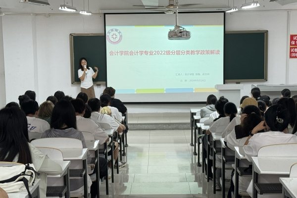 为满足学生个性化职业发展需求,促进学生成长成才,保障2022级本科分层分类教学工作顺利进行,会计学院于5月15日至17日,分专业由各专业教研室主任和考研教研室全体老师为2022级学生开展分层分类教学政策解读会。