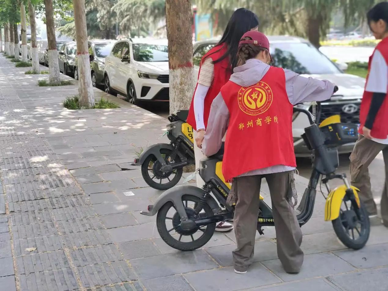 到达场地后,负责老师将志愿者们划分成若干小组,并为各个小组精准分配了任务区域。在劳动过程里,同学们互相配合,将乱停乱放的共享单车摆放整齐。遇到对交通有阻碍的单车,同学们齐心协力,共同将它们平稳地放置到指定的停放区域,摆放得整整齐的。同学们充分展现了团结合作的精神。他们互相帮助、遇到困难一起解决。当有人搬不动沉重的单车时,立刻会有同伴伸出援手,大家心往一处想,劲往一处使,为了共同美化环境的目标而努力。