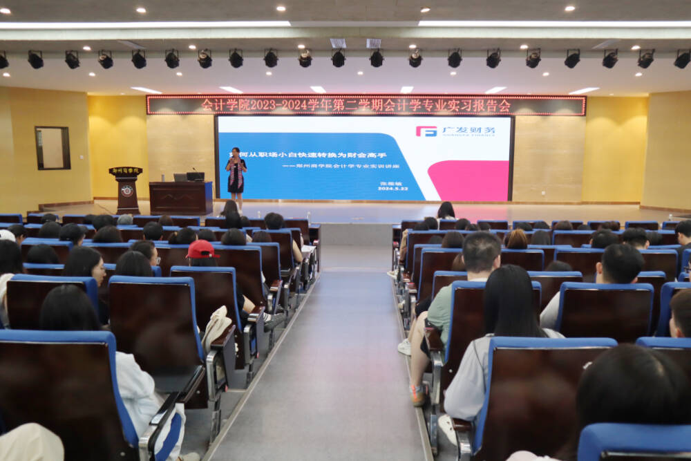 为提升学生实践能力,感知专业场景,增强实务经验,我院于5月22日下午在自力楼报告厅举办专业实习报告会,邀请河南广发财务管理有限公司张稚敏老师开展专业实习报告会,21审计1、2班,21会本2、4、6班学生及指导老师参会。