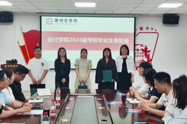 为表彰在考研道路上辛勤耕耘、成功上岸的优秀学子,并激励更多学生考研,2024年6月6日,会计学院在广恩楼103会议室隆重举行了“考研学子圆梦表彰大会”。会议由考研教研室汪艳老师主持,会计学院院长祝利芳、党委书记刘宏涛、副院长刘金金及考研教研室主任武佳莉、2024届毕业班辅导员代表以及2024届考研成功学子共同参加。