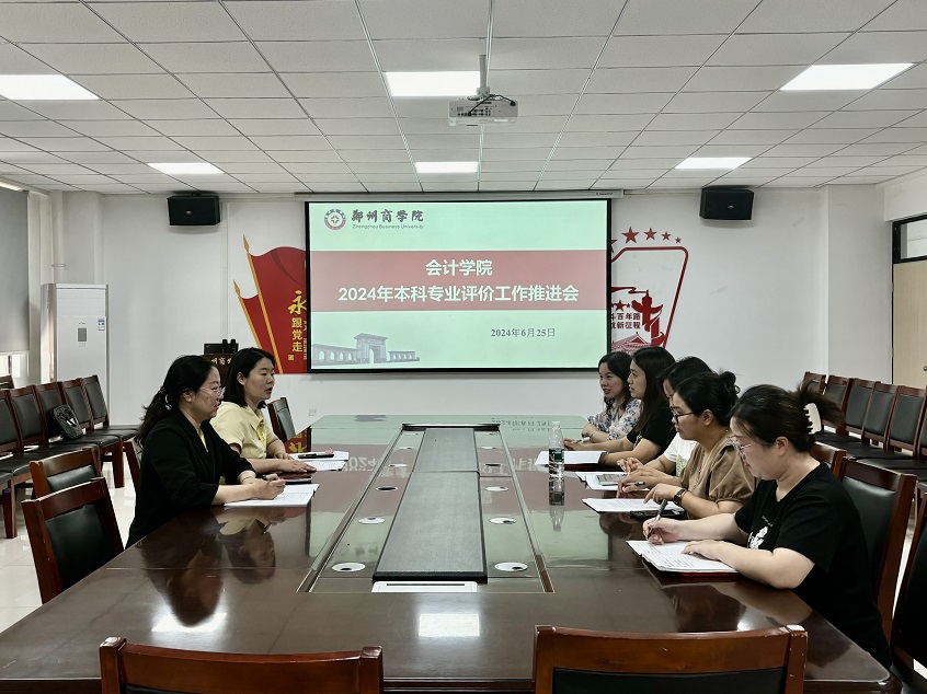 为保障本科专业评价工作顺利开展,我院于6月25日上午在广恩楼103会议室召开“会计学院2024年本科专业评价工作推进会”,会计学院院长祝利芳、副院长刘金金及教研室主任参加了此次会议。