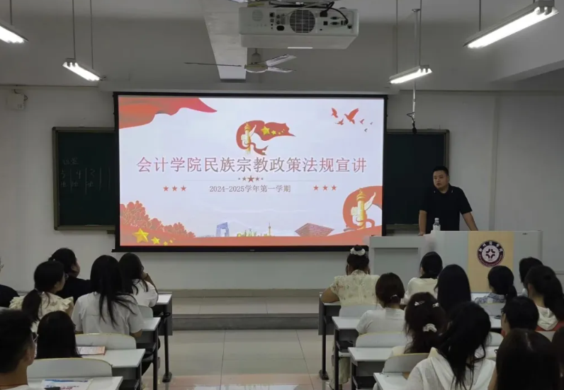 为深入贯彻民族团结教育理念,切实增强我院学生的民族团结意识,牢固树立起强烈的民族责任感。会计学院组织各班于广恩楼开展“民族团结一家亲,共筑青春梦同行”主题班会。