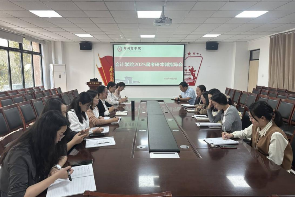 为进一步强化教师与辅导员双重指导效果,更好的引导和帮助2025届考研学生科学备考、全力以赴做好最后冲刺,9月24日上午,我院在广恩楼103会议室召开“会计学院2025届考研冲刺指导交流会”。我院院长祝利芳、党委书记刘宏涛、考研教研室全体教师以及毕业班辅导员参加了此次会议。