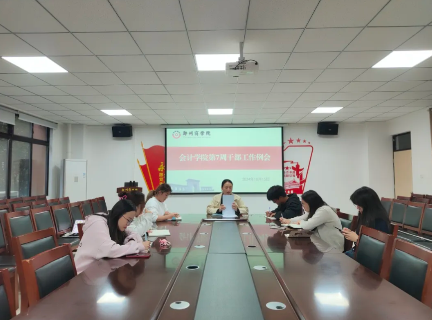 为了进一步加强学生会的组织建设,提升学生干部的工作能力和服务水平,10月15日晚,我院于广恩楼103会议室组织召开第七周学生干部工作例会,本次会议由行政秘书兼团委书记孙柳阳主持召开,会计学院全体学生干部参加。