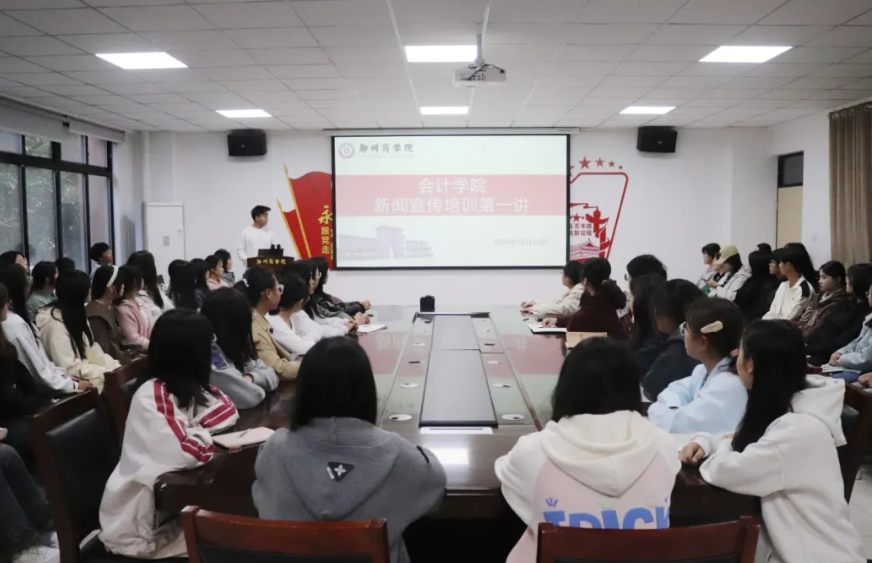 为培养24级新媒体中心新成员的工作能力,加强同学们对相机的认识以及拍摄角度的了解,促进交流学习。10月19日下午,会计学院新媒体中心在广恩楼103教室召开新闻宣传培训活动第一讲——相机的使用及拍摄构图。