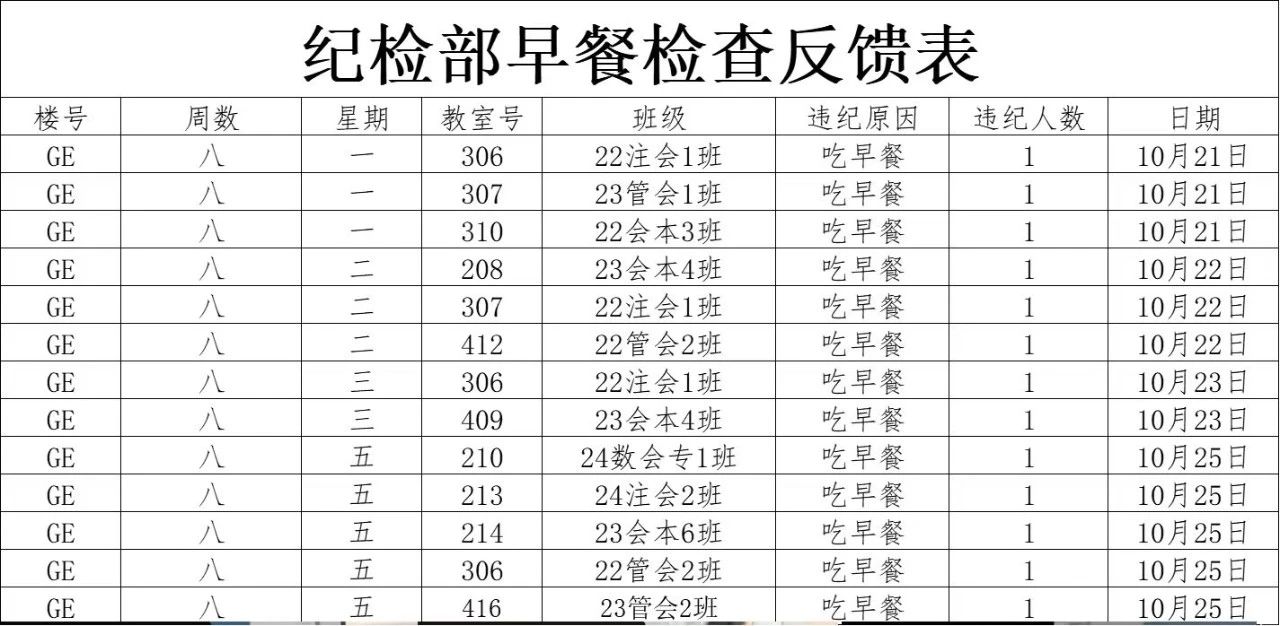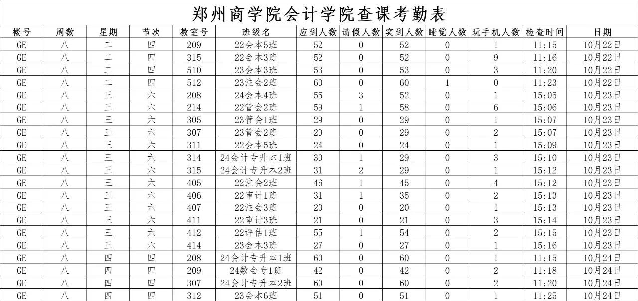 上表为本周检查结果,望同学们能够端正自我品行,遵守课堂纪律,为我院学风建设添砖加瓦。