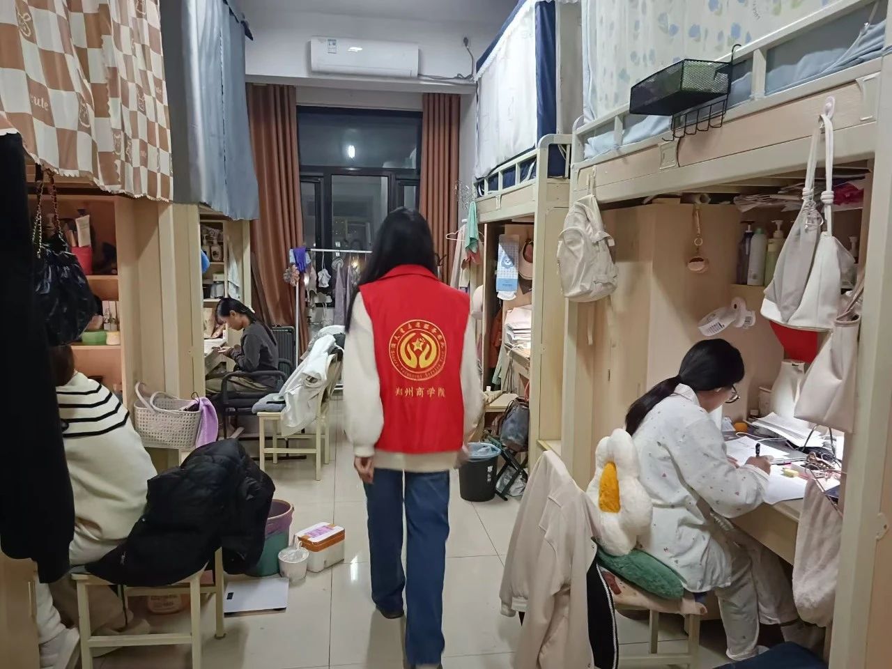 查寝过程中,学生干部认真负责,相互配合,重点检查宿舍消防器材的保管、电器的使用情况及宿舍卫生等方面,对于个别存在问题的宿舍,学生干部提醒同学们尽快整改。辅导员老师也强调同学们合理运用电器、规范自身行为,为同学们营造更加安全的生活环境。
