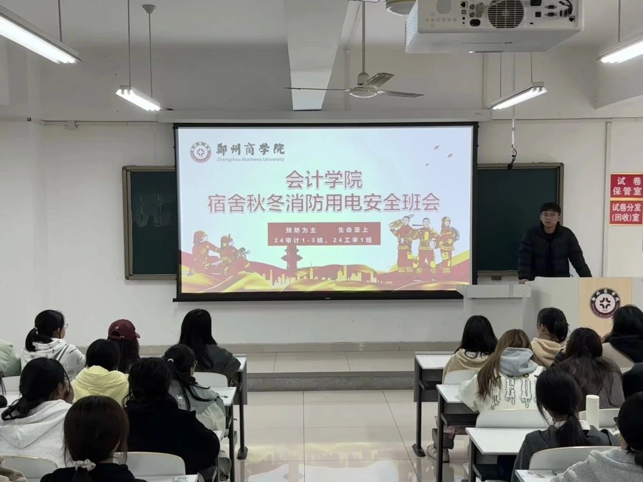 秋冬来临,天干物燥,宿舍消防安全关乎每个学生的人身安全,为全面提升学生的消防安全意识和能力,维护宿舍的安全与稳定,会计学院全体师生以“第33个全国消防日”为契机,召开宿舍秋冬消防用电安全班会。
