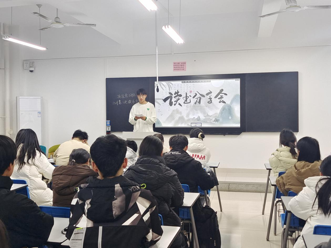 阅读是人类获取知识、启智增慧、培养道德的重要途径。为助力同学们加强阅读引领,涵育阅读风尚,积极营造爱读书、读好书、善读书的浓厚氛围。12月4日,24注会1班在广恩楼开展了一场以《博古通今》为主题的班级读书分享会。