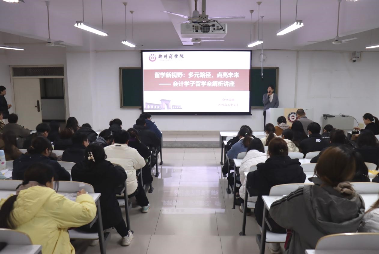 为帮助学生更好地规划留学路径、拓宽国际视野,我院联合国际交流合作处于12月9日在GE104成功举办了主题为“留学新视野:多元路径,点亮未来”的讲座。讲座围绕“留学规划、项目介绍、政策支持、经验分享”四大维度,全面解析会计学子留学的机遇与挑战,为有意向出国深造的学生提供了清晰的指导。德赢官网国际交流合作处赵彦丽处长及骨干教师、我院教师代表以及大二、大三有意向出国深造的学子参加了本次讲座。会议由考研教研室主任武佳莉主持。