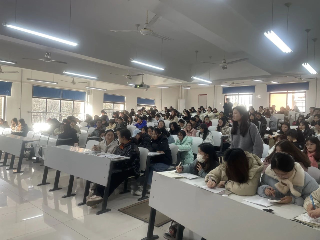 随后,张鑫学长强调,要时刻保持学习热忱,持续自我提升,勇于担当,积极服务群众,并分享了如何在基层工作中保持积极向上的心态,以及如何平衡工作与生活的方法。互动环节中,同学们踊跃提问,围绕选调生报考条件、基层工作挑战与应对等方面纷纷抛出心中疑惑,张鑫校友一一耐心解答,他鼓励同学们要勇于面对挑战,珍惜每一次锻炼的机会,不断提升自己的综合素质。