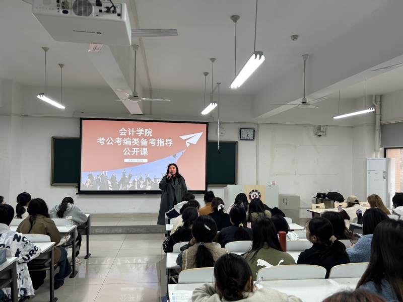公开课伊始,左玉双老师亲切地向同学们进行了自我介绍,随即巧妙运用答疑互动的方式,迅速拉近与同学们的距离,自然流畅地引入本次公开课的核心主题,成功点燃同学们的参与热情。在关键的讲解环节,左老师借助生动鲜活的实际事例,深入浅出地阐释了“信息差”在考公过程中的重要影响,使同学们深刻认识到全面掌握政策与考情的重要意义。随后,左老师进一步通过展示不同岗位的工作内容,详细解读了各类公务员岗位以及事业单位编制的独特特征与相应的能力需求,让同学们对未来的职业选择有了更为直观、清晰的认知。尤为贴心的是,左老师还针对应届生群体的普遍特点以及会计专业学生的独特需求,量身定制,给出了极具针对性和实用性的指导建议,赢得同学们阵阵掌声。在详细讲解的环节,左玉双老师通过不同岗位工作内容向同学们讲解了各类公务员和事业单位编的特征及能力需求。同时针对应届生群体和会计学生的特点,提供了指导和建议。