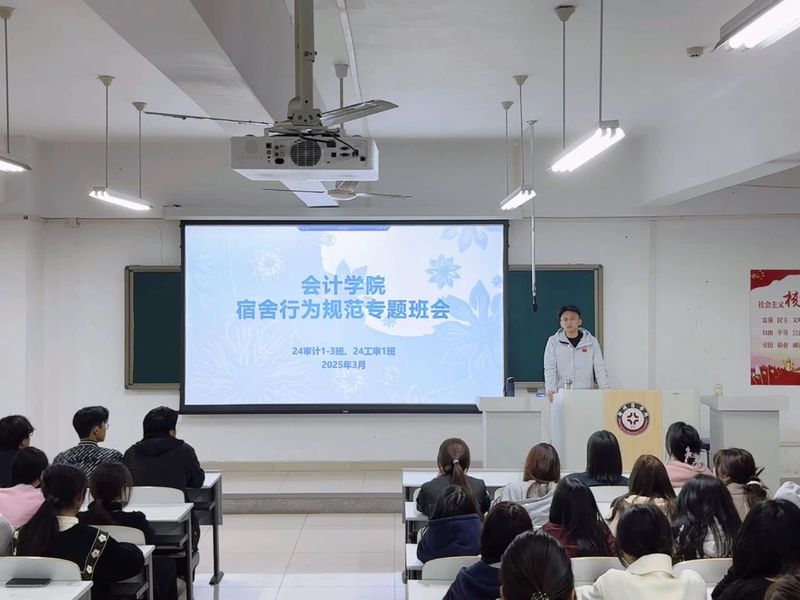此次专题班会的顺利召开,不仅提升了学生的安全防范能力和自我管理能力,还为构建和谐校园奠定了坚实的基础。相信在今后的宿舍生活中,会计学子将以更加积极的态度践行这些规范,共同营造一个美好的宿舍环境。