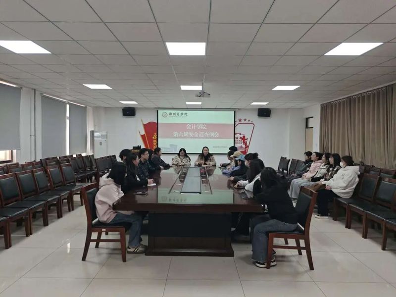 为持续强化校园安全管理,落实常态化巡查机制,提升校园安全管理效能,为师生营造更加安全稳定的校园环境。3月28日,会计学院在广恩楼103会议室召开第六周安全巡查例会。本次会议由会计学院行政秘书兼团委书记孙柳阳主持,值班老师及巡查学生骨干参加会议。