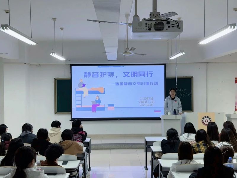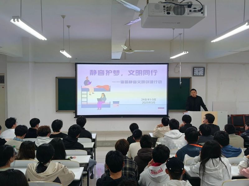 在繁忙的学习生活中,良好的宿舍环境对于同学们的身心健康和学习效率至关重要。为了营造一个安静、舒适、和谐的宿舍氛围,会计学院全体辅导员组织开展了“静音护梦,文明同行”——宿舍静音文明创建行动主题班会,旨在引导同学们提高文明意识,共同守护美好的宿舍生活。