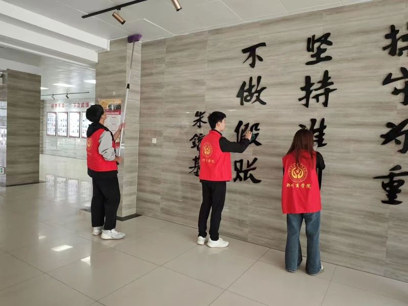 活动期间,学生们在辅导员的带活动现场领下,迅速投入到紧张而有序的清扫工作中。大家分工明确,干劲十足,同学们重点对卫生死角进行了全面清理。高处的蜘蛛网、楼梯扶手、走廊栏杆也被打扫得一尘不染。劳动工具摆放区域也进行了规范整理,各类扫帚、拖把整齐排列,方便后续使用与管理。辅导员办公室也窗明几净,办公桌椅摆放有序,文件资料整理得井井有条,为辅导员们创造了更为舒适的办公环境。