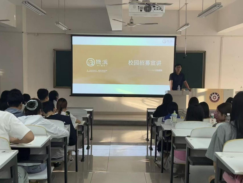 此外,人力资源部经理通过门店和企业活动照片,向同学们展示了优雅的工作环境、丰富的员工活动以及人性化的企业管理。同时,隐溪为应届毕业生提供岗前培训、住宿保障等多项福利,帮助学生顺利完成从校园到职场的过渡。