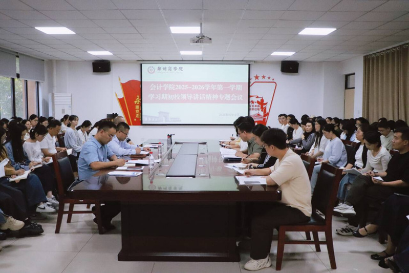 为深入学习贯彻学校2025—2026学年第一学期全体教职工大会上的董事长讲话和学校党政工作报告精神,9月12日下午,会计学院在广恩楼103会议室召开深入学习期初校领导讲话精神专题会议,会计学院党委书记刘宏涛、会计学院副院长刘金金以及会计学院全体教职工参加会议,校党委副书记兼纪委书记裴晓涛、学务长路程、质评中心主任李斯莅临指导。