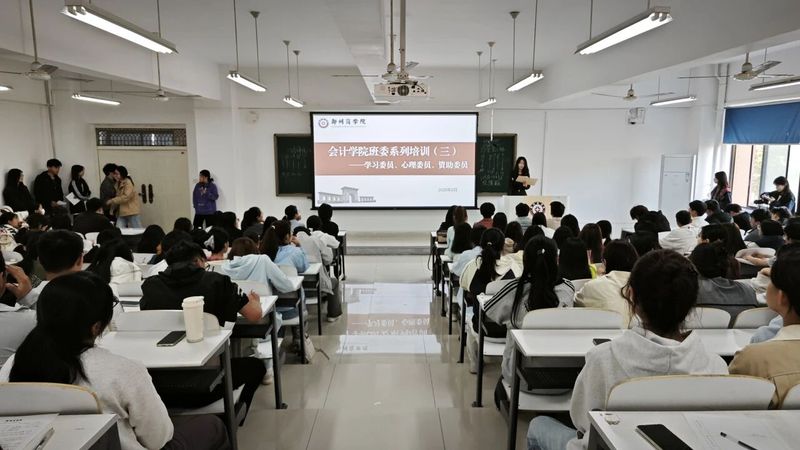 为了进一步强化新一届班干部的责任担当与履职能力,夯实班级管理根基,营造优良班风学风。近期,我院在广恩楼304教室组织召开2025级新生班委培训大会,24会本1班学习委员姜宇珊、24会本4班心理委员张秀齐和24会本4班资助委员作为上一届模范班干部,分享了各自的工作经验与心得。
