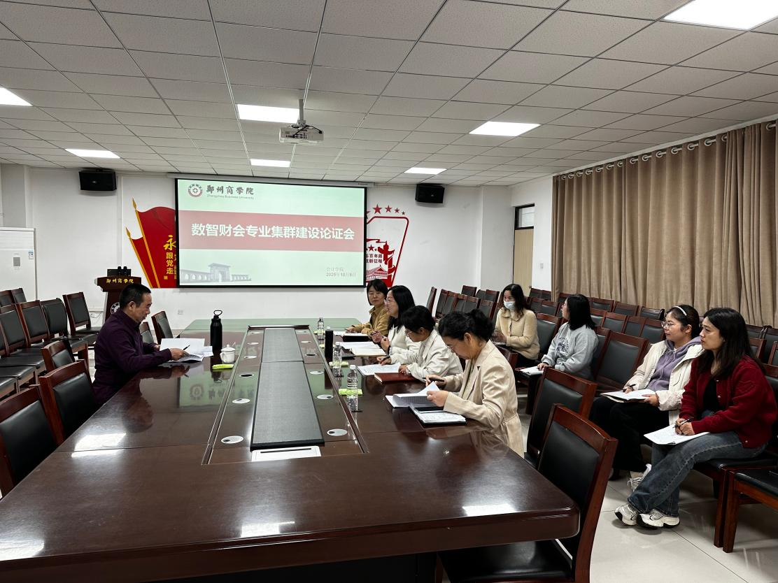 为贯彻落实期初校领导讲话精神,精准对接数字经济时代财会人才需求,优化专业建设路径,10月9日上午,会计学院邀请郑州航空工业管理学院叶忠明教授莅临我院开展“数智财会专业集群建设论证会”,会计学院院长祝利芳、管理学院院长李晓翠、管理学院副院长张卫丽、会计学院副院长刘金金以及其他无课专业负责人参加了此次会议。