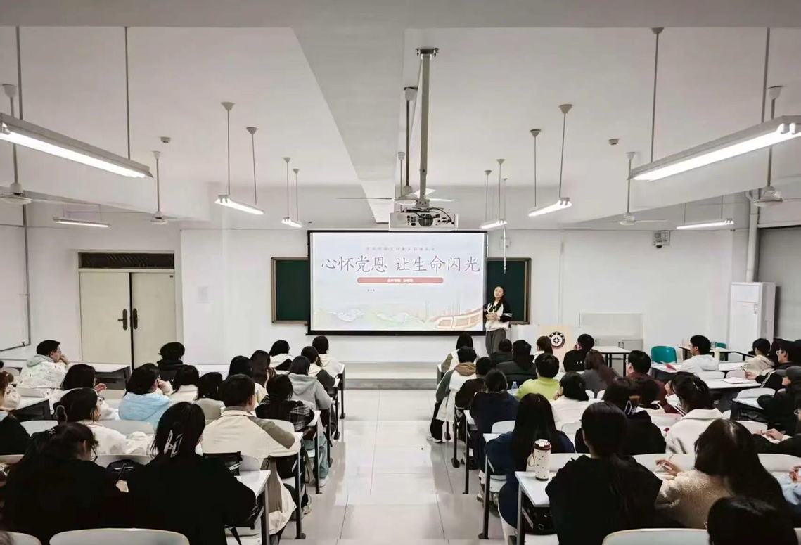 课上,孙柳阳老师以“心怀党恩,让生命闪光”为主题,围绕“中国共产党诞生104周年”展开讲解,以九三阅兵的震撼画面、长征时期的艰苦环境、《春天的故事》的悠扬旋律为切入点,通过具象化的场景呈现,让积极分子们直观感受党的百年征程的波澜壮阔。随后,以脱贫攻坚全面胜利、科技自立自强等重大成就为实例,清晰梳理了我国从解决温饱到走向富强的发展跨越,让积极分子深刻体会党的领导下国家发展的显著成效。最后,课程聚焦校园日常,以班委协调同学矛盾、主动服务集体的案例为抓手,生动诠释了平凡岗位上的担当价值,并对入党积极分子提出期望,鼓励大家将党恩铭记于心,以实干践行初心,让青春在服务集体、奉献社会中实现价值。
