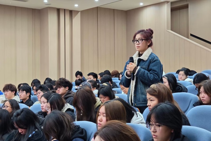 接着,职业规划部分,他结合行业趋势,梳理了企业财务、会计师事务所、金融机构三大主流就业方向,并围绕大学阶段、职场初期与中长期发展三个时期,就证书规划、能力积累与角色转型提出具体建议,帮助学生构建分阶段、可持续的成长框架,明晰学业与职业的衔接路径。