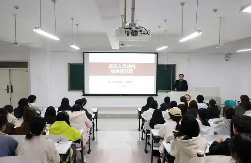 为进一步加强入党积极分子的思想教育,引导学生树立正确入党动机,提升学生党员的党性修养,10月28日,会计学院在广恩楼104教室开展第41期入党积极分子党课第六讲,此次党课由会计学院党委书记刘宏涛同志授课。
