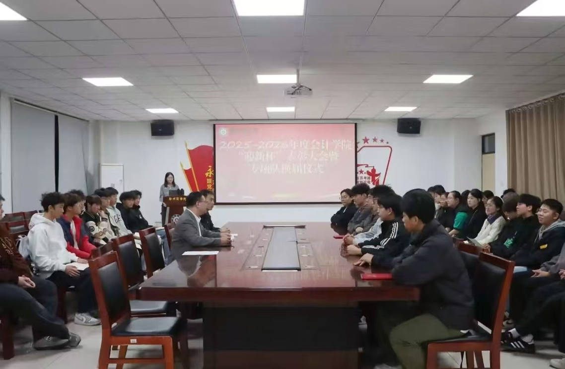 10月30日,会计学院在GE103会议室组织召开2025-2026年度“迎新杯”表彰大会暨专项队换届仪式。出席本次会议的有会计学院党委书记刘宏涛、身体素养提升工程专项组负责人赵佳伟以及部分师生代表等。
