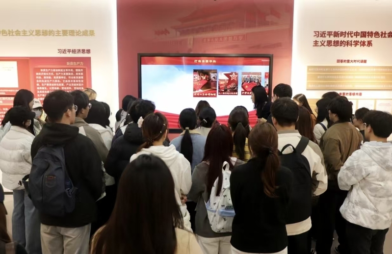 参观过程中,马克思主义学院卢温蒂老师带领入党积极分子们循着马克思主义中国化时代化的历史进程有序推进,围绕展厅里马克思主义的创立与发展、列宁主义的形成与发展、毛泽东思想的形成与发展、中国特色社会主义理论体系的形成与发展以及习近平新时代中国特色社会主义思想五个部分展开学习。通过互动屏幕演示、情景模拟体验、问题互动等多样化形式讲解,让党的创新理论变得通俗易懂、更接地气,有效调动了学生的学习主动性。