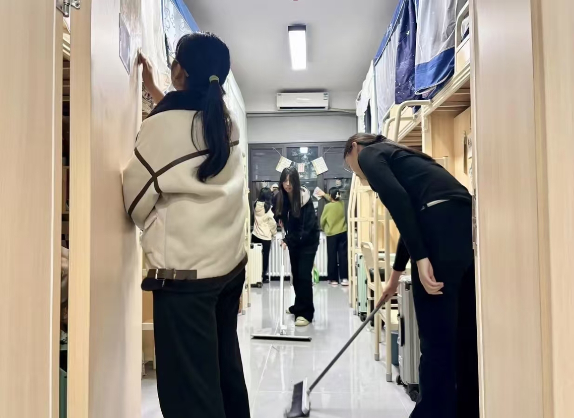 本次宿舍门窗全面清洁活动得到了有序开展。活动前期,辅导员老师向同学们明确了清洁标准,具体包括窗纱无污渍、窗框无灰尘、窗台无杂物,且门体及门把手清洁到位。进入清洁环节,同学们始终秉持“重效果、更重细节”的原则投入劳动。他们认真擦拭每一处污渍,不放过任何一个角落,全力确保门窗洁净无死角。这种细致入微的态度,不仅让宿舍的整体卫生状况得到显著提升,更彰显出同学们对生活品质的追求与对美好居住环境的向往。