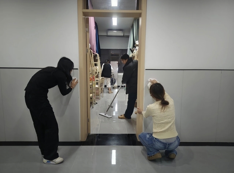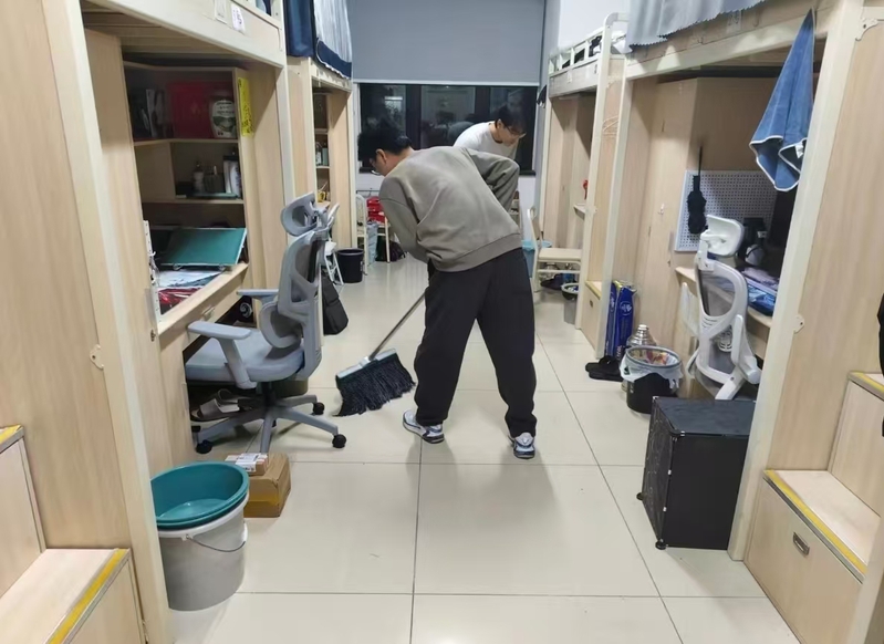 本次专项整治聚焦宿舍环境突出问题,以地面清洁与设施维护作为活动重点。活动期间,各宿舍同学积极响应,热情投入。学生们分工协作,对宿舍地面进行了彻底清扫和拖洗,清除了积存灰尘与杂物;随后对暖气片内外进行了细致擦拭,确保后期宿舍暖气的正常使用;同时,学生们也对宿舍楼内的消防设施进行了外部清洁与安全检查,确保其周围无杂物遮挡,状态醒目,消除了安全隐患。整个劳动场面井然有序,宿舍环境焕然一新,充分展现了我院学生文明住宿的风貌。